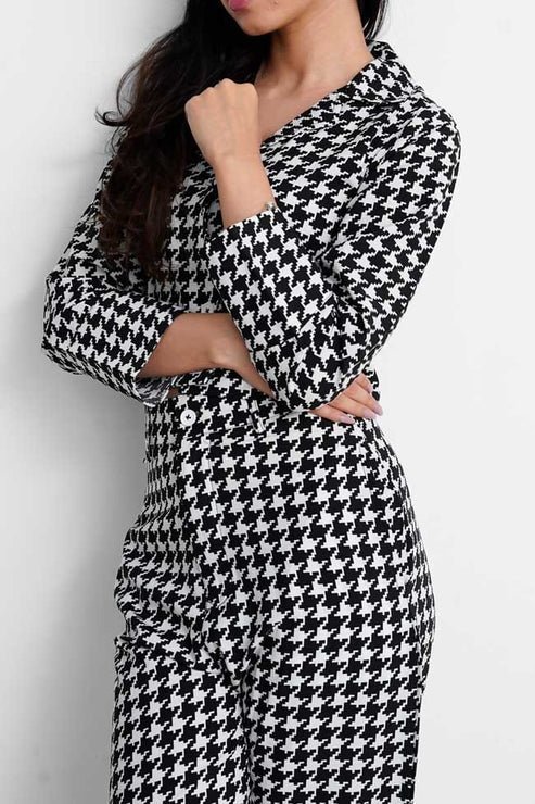 A classy houndstooth coord set designed for modern women. Perfectly tailored for chic everyday wear and versatile styling.