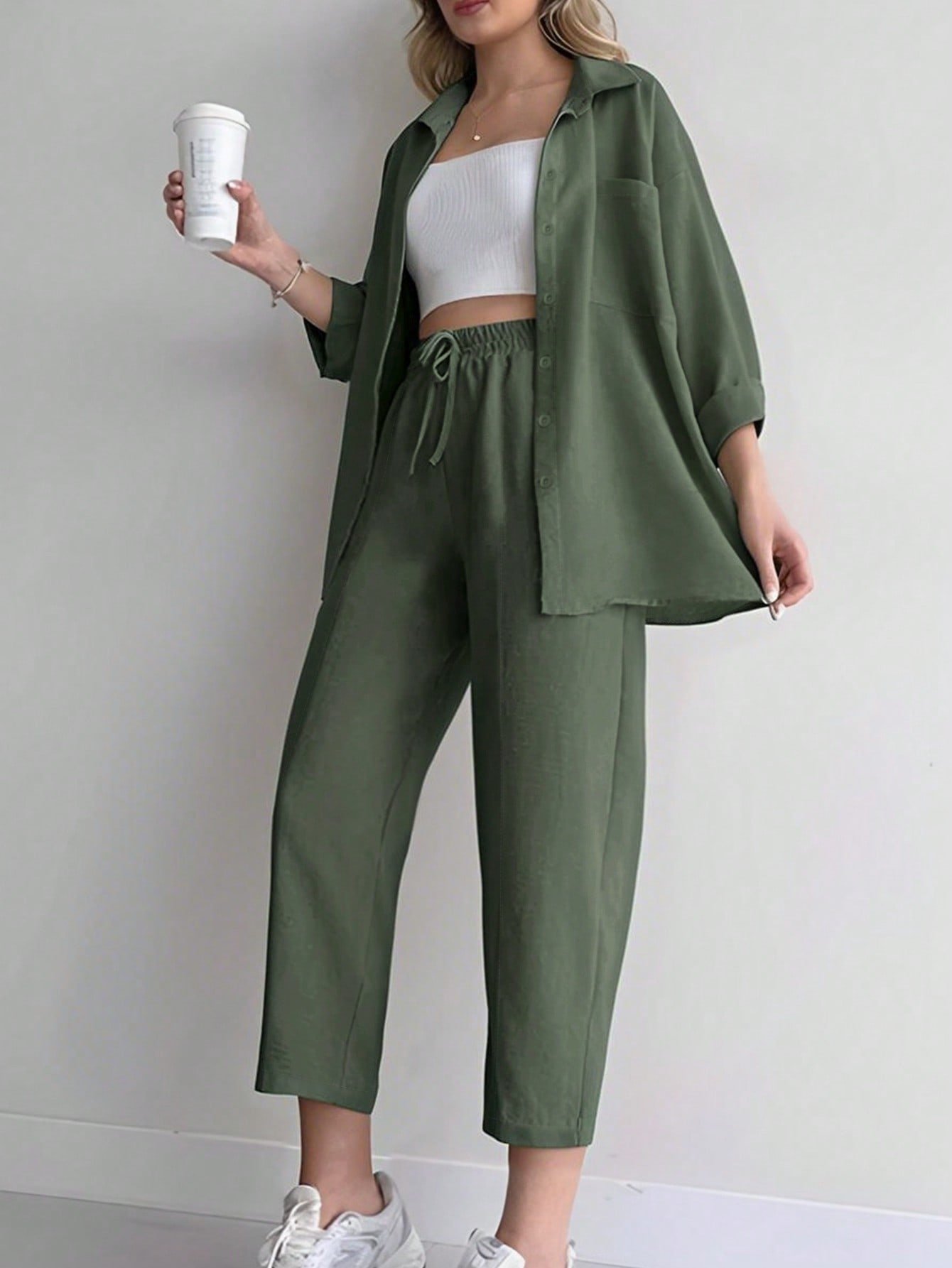 Be the first to review “Elegant Polo Collar Cardigan & Wide-Leg Pants Co-ord Set” Cancel reply