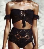 Home » Shop » Knitted Swimwear Women Bikini Set Off Shoulder Swimsuit Bandeau Swimming Suit for Women Bandage High Waist Bathing Suit