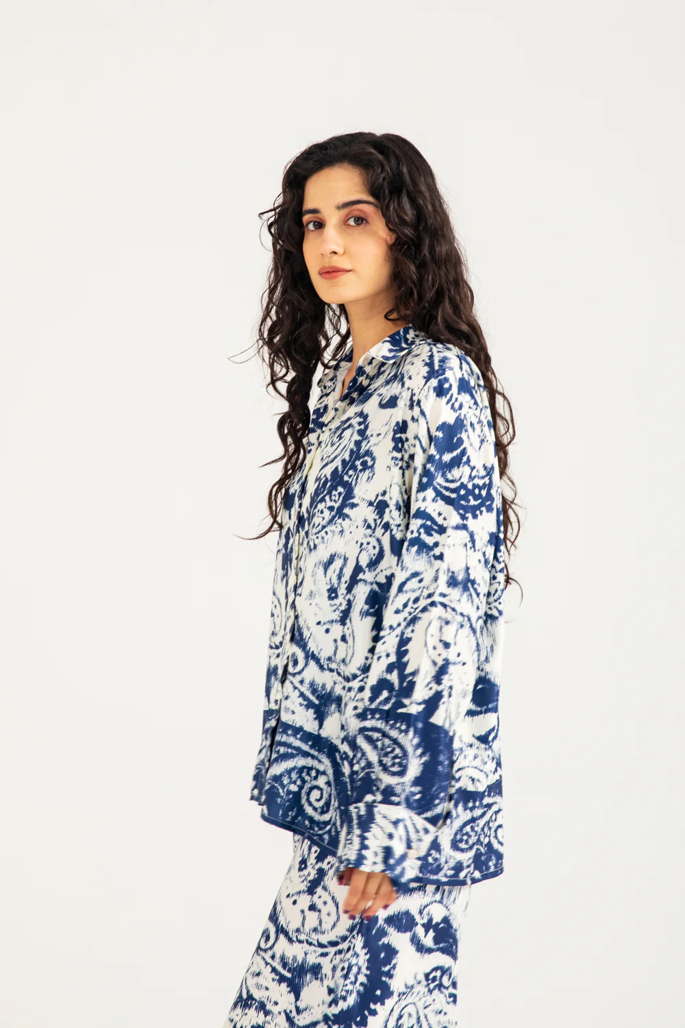 SKU: N/A Category: Co-ord Tags: Button Down Shirt, Elegant Top, Printed Satin Shirt