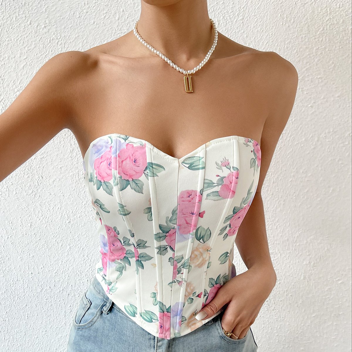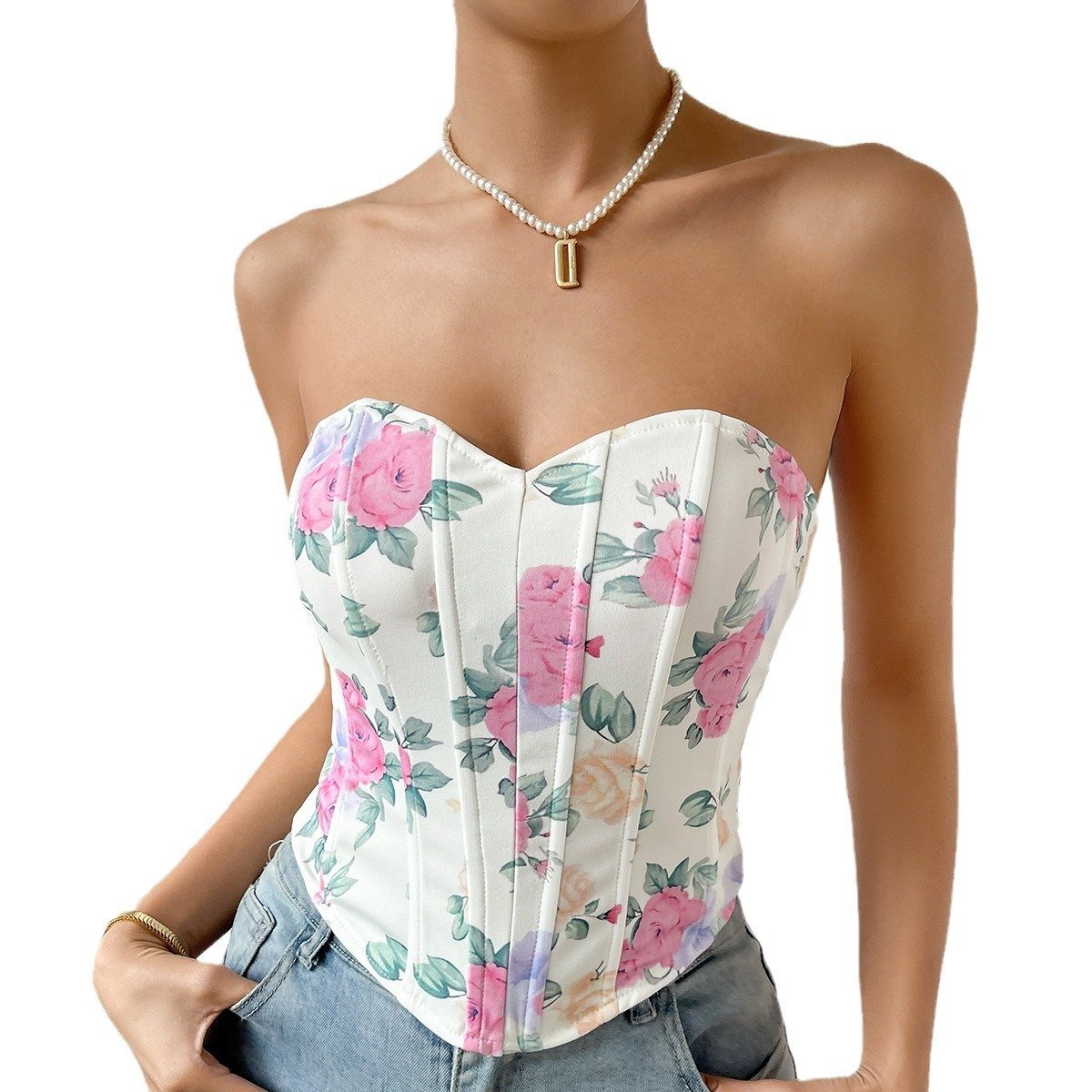 Sexy Hot Girl Low-cut Backless Flower Wrapped Chest Rhombus Fishbone Waist