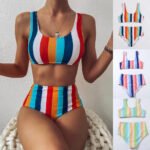Home » Shop » Striped Print Bikini High Waist Swimsuit