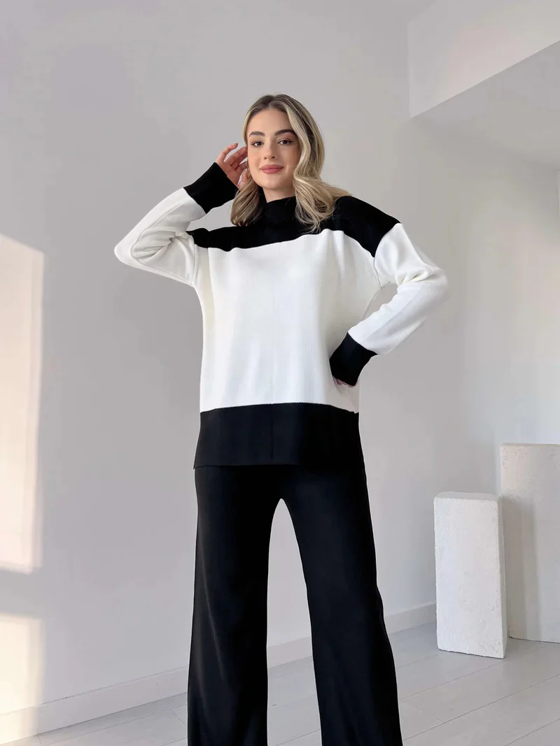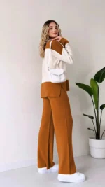 The paneled design top adds a modern structured look, while the matching trousers feature a relaxed fit with an elastic waistband, making it comfortable for all-day wear. Whether styled with boots for a chic winter outing or sneakers for casual comfort, this coord set is your go-to choice for effortless winter fashion.