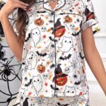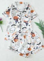 Home » Shop » Women Halloween Satin Pajama Set Ghost Pumpkin Print Top With Shorts Sleepwear