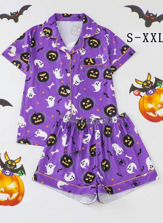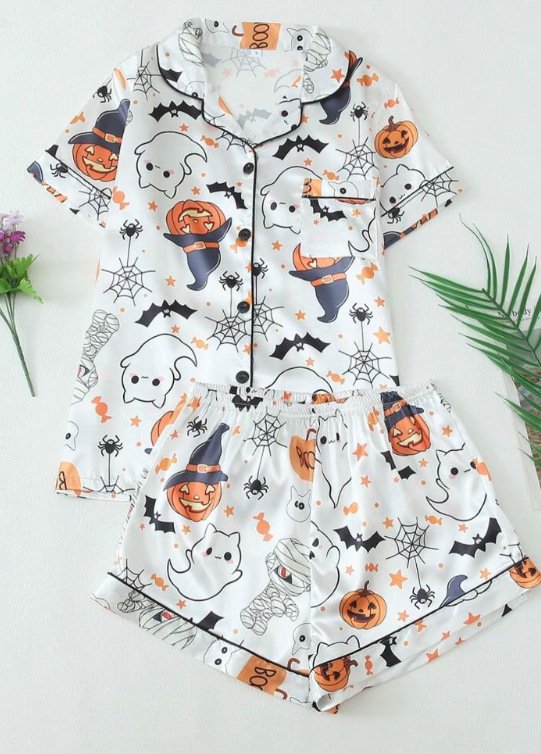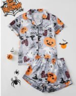 Be the first to review “Women Halloween Satin Pajama Set Ghost Pumpkin Print Top With Shorts Sleepwear” Cancel reply
