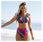 Multicolor Print High Waist Swimsuit Sexy Women Swimwear