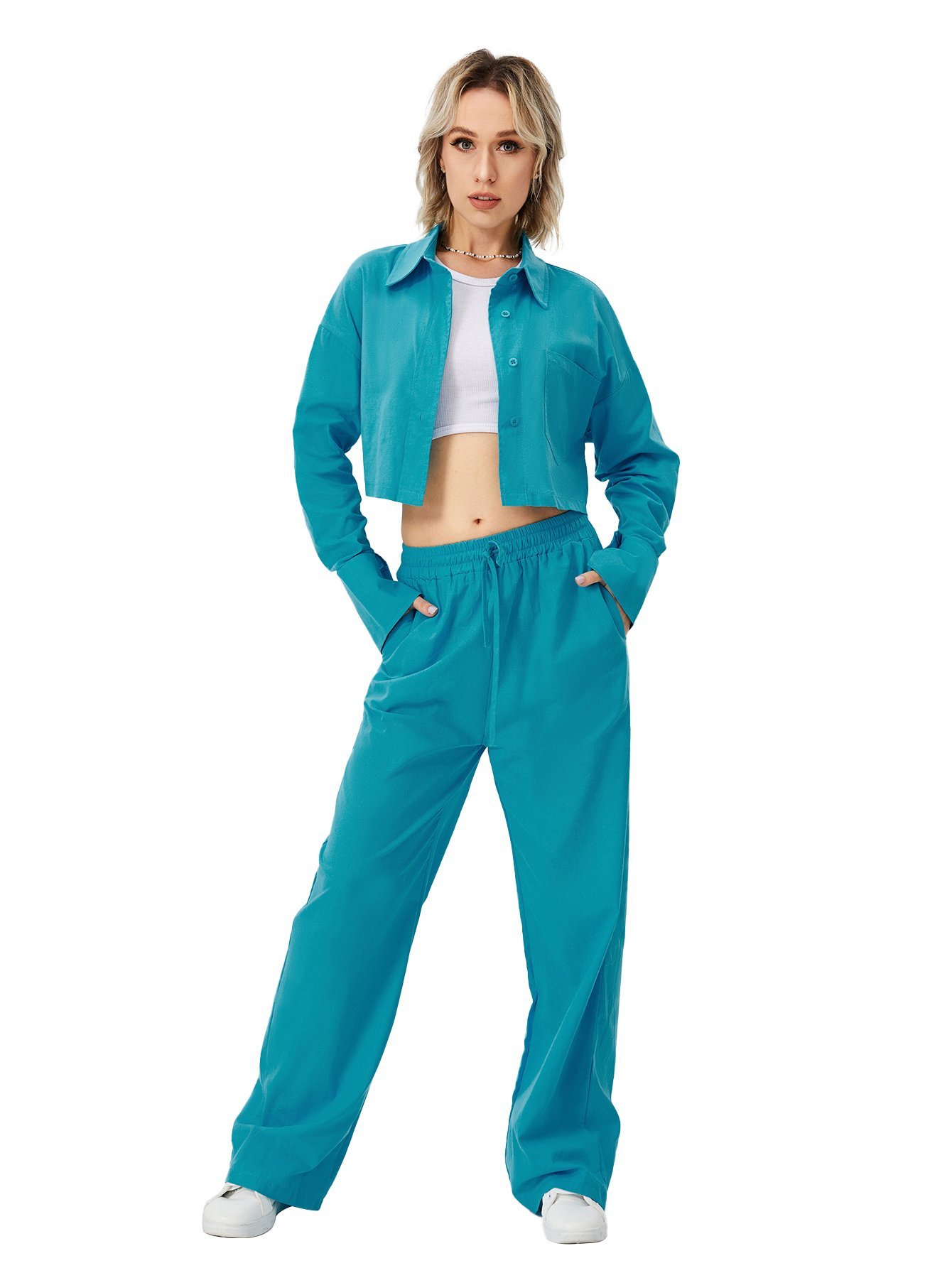 Women Two Piece Outfits For Women Long Sleeve Button Down Wide Leg Loungewear Pajama Set