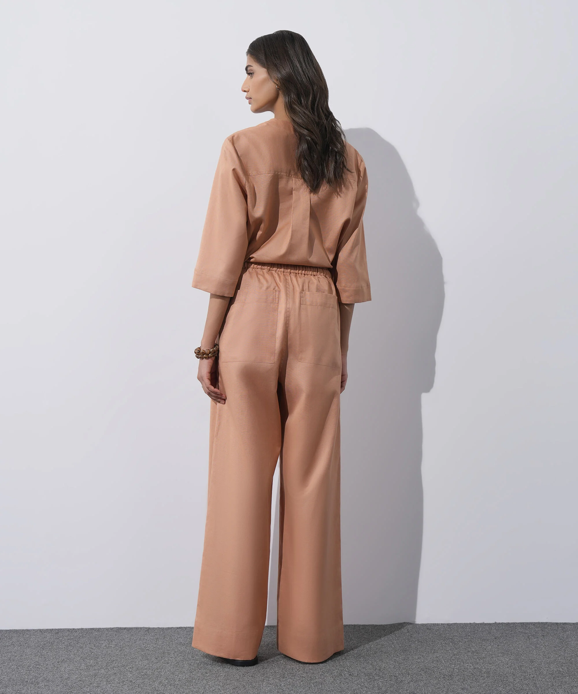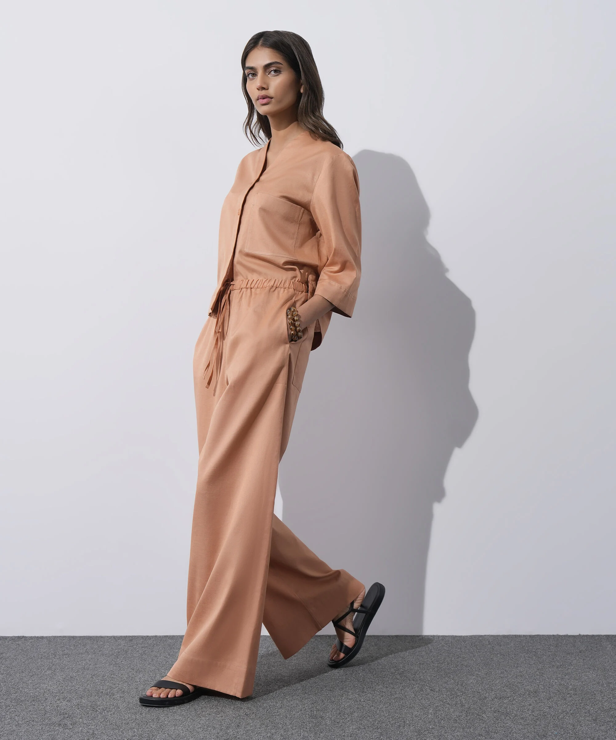 The peach colour adds a soft, feminine touch to this versatile two-piece, making it easy to style with sneakers for a relaxed vibe or heels for a polished look.